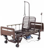 Функциональная кровать Мед-Мос E-45A (MM-5628H-03) для ухода за больными и инвалидами. Рама изделия выполнена из стального профиля и покрыта ударопрочной эпоксидной эмалью. Торцевые ограждения (изголовье и изножье) кровати легкосъемные выполнены из ЛДСП с прорезями.